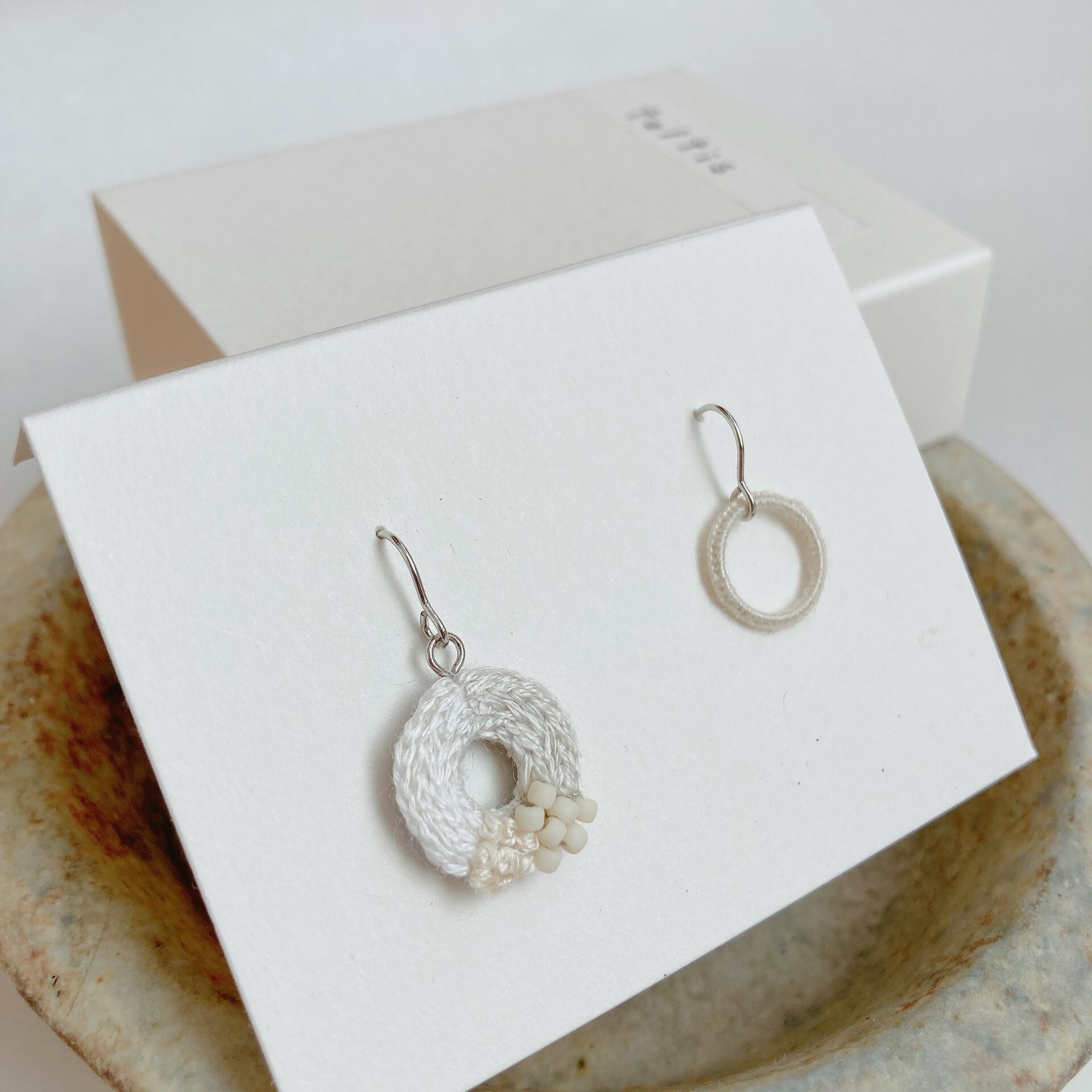 リングとビーズのまるピアス/イヤリング(白×オフホワイト)
