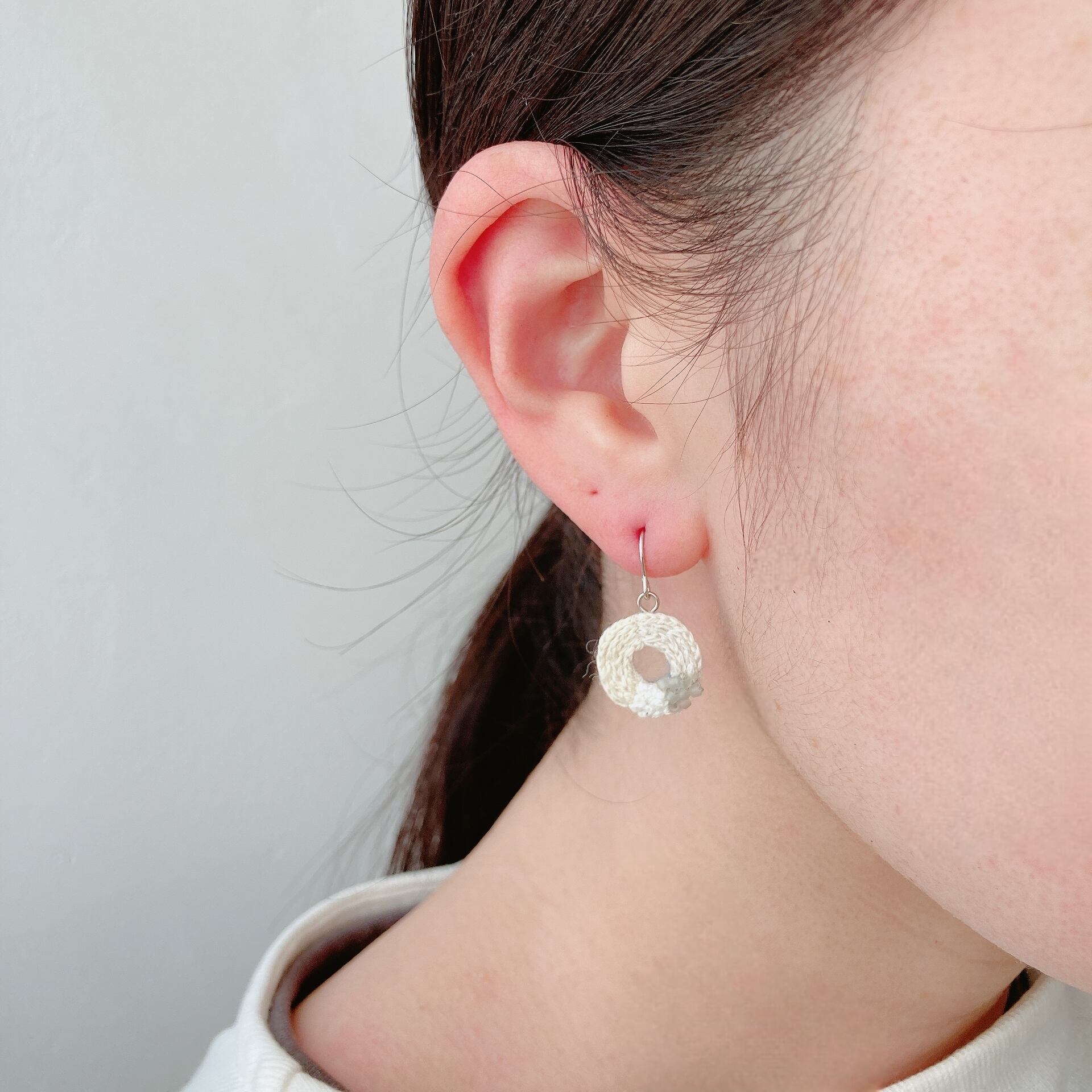 リングとビーズのまるピアス/イヤリング(白×ライトグレー)