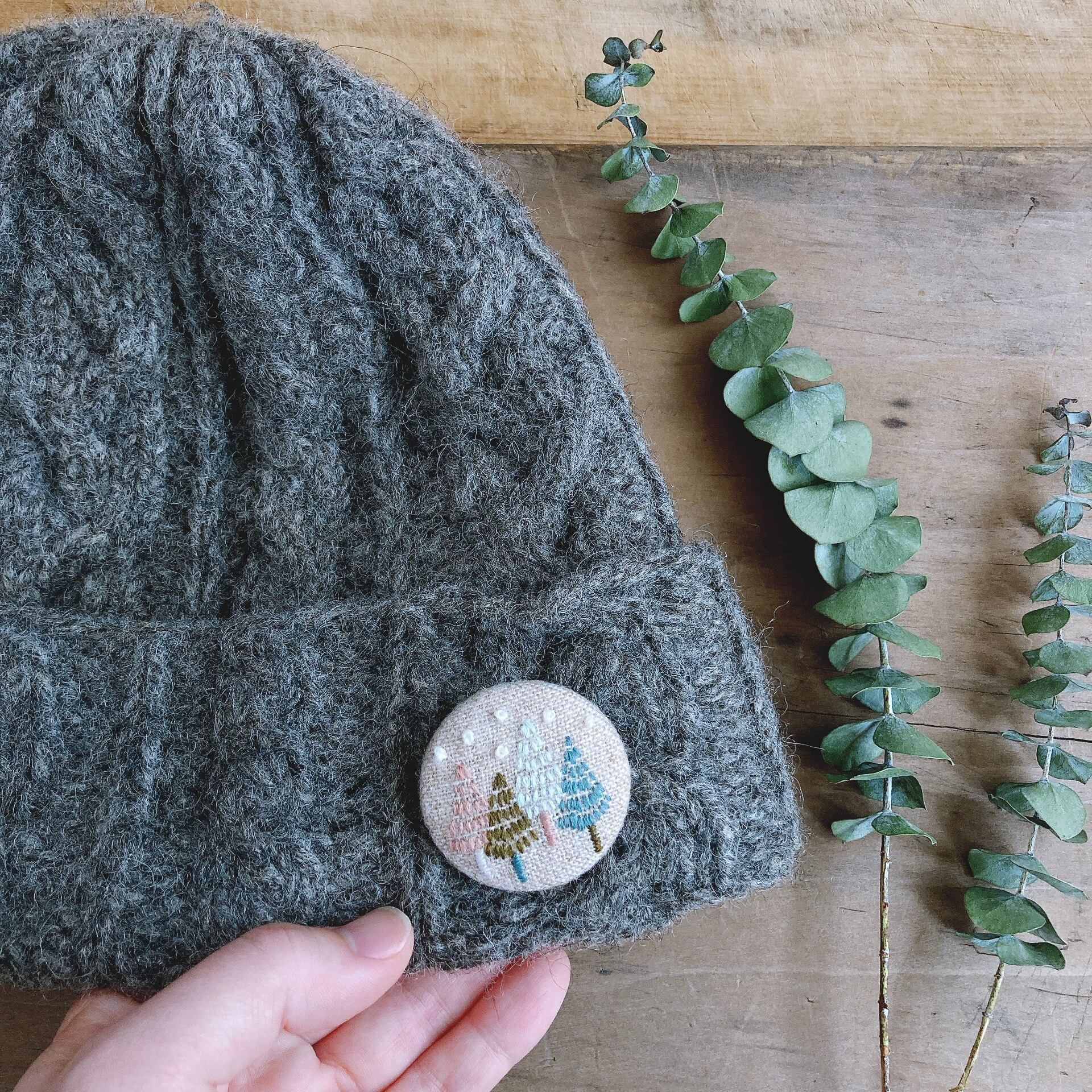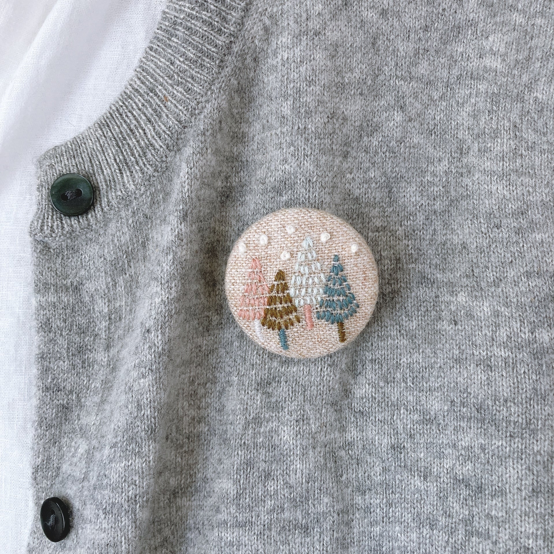 刺繍ブローチ『winter trees』/生成