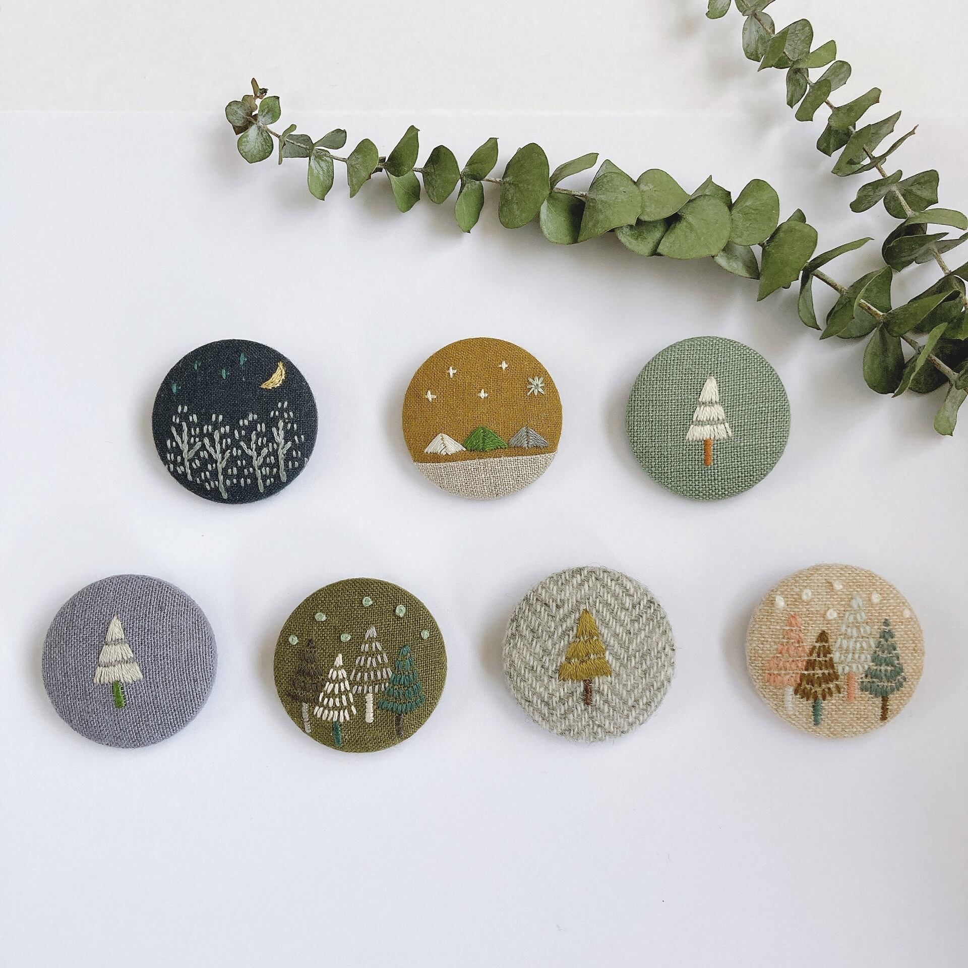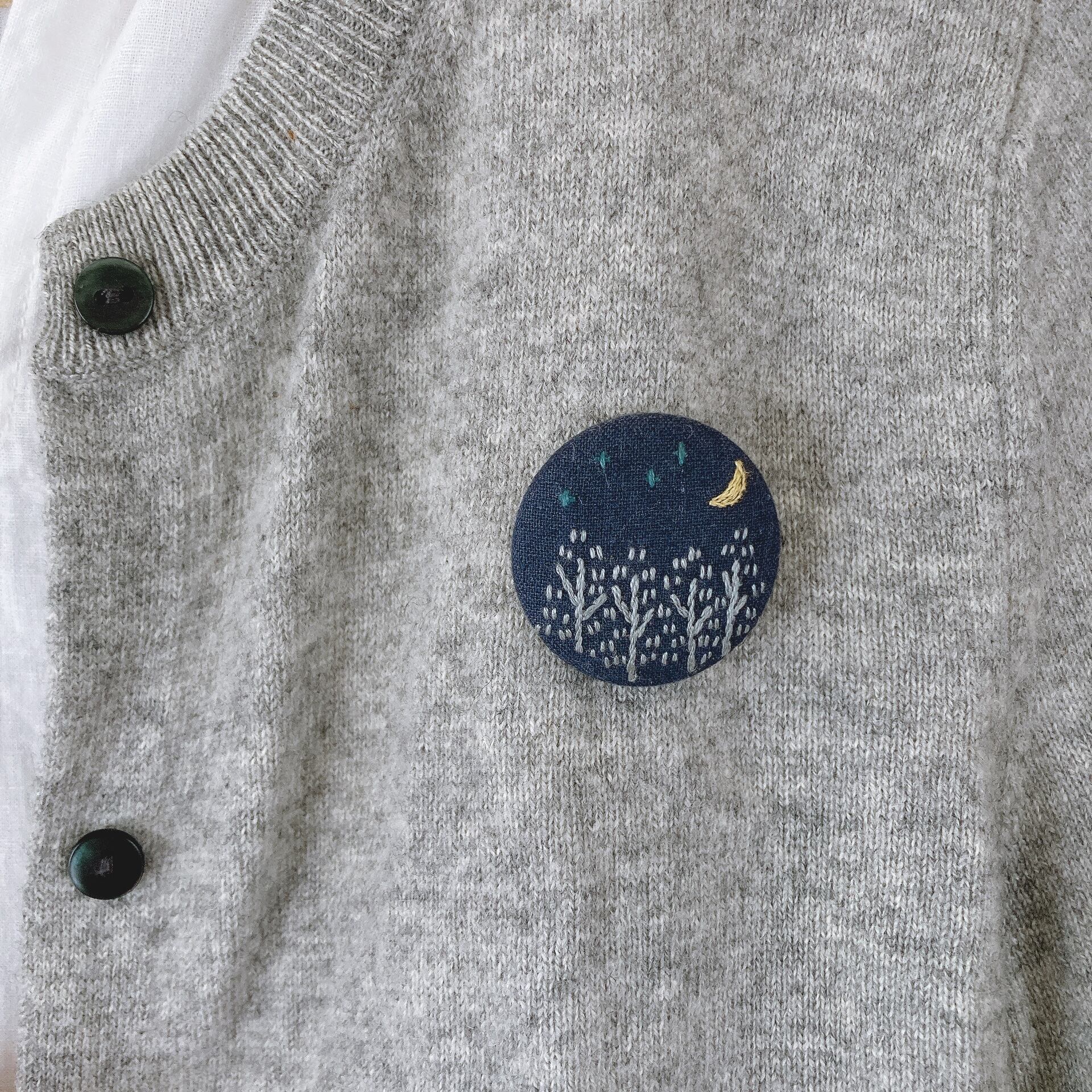 素材:麻(布)、刺繍糸、フェルト、ブローチピン